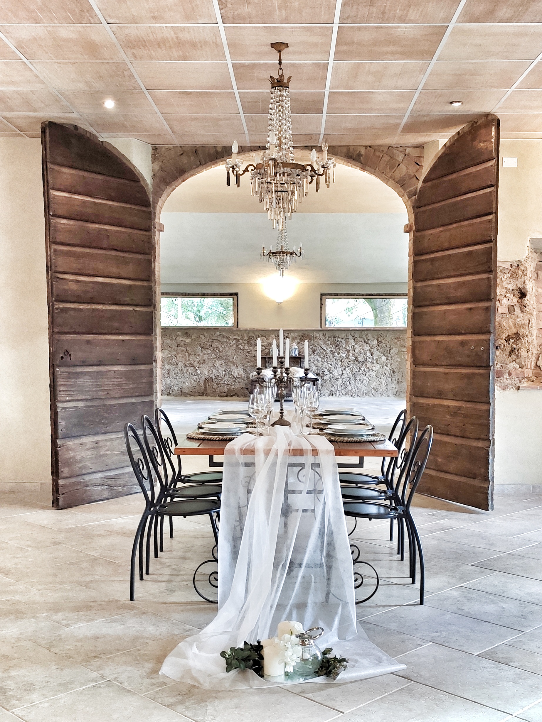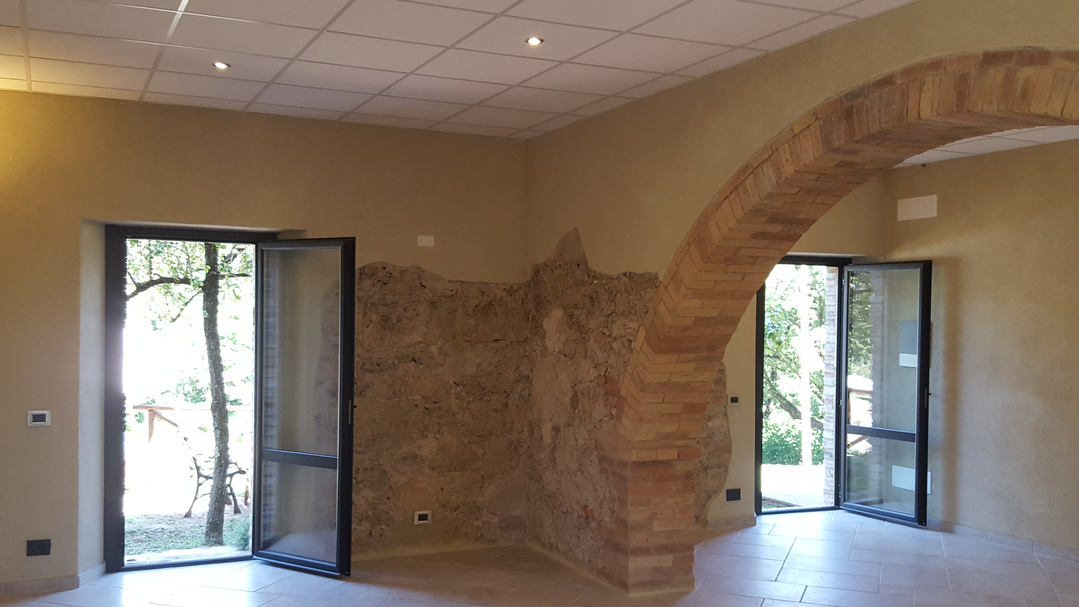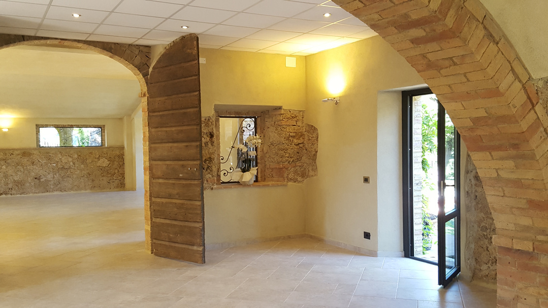 La grande sala interna è composta di due grandi stanze comunicanti che possono essere unite in modo da creare un unico ambiente